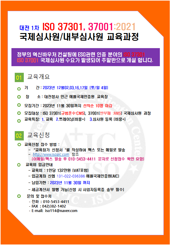 ISO 37001, ISO 37301 ±¹Á¦½É»ç¿ø ¾ç¼º°úÁ¤ ¸ðÁý°ø°í(¼±Âø¼ø 10¸í)
